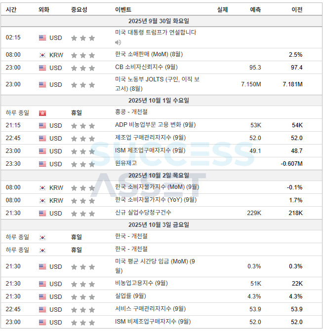10월 1주차 주요지표발표일정