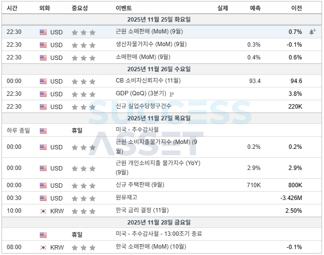 11월 4주차 주요지표발표일정