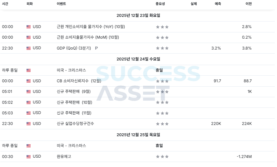 12월 4주차 주요지표발표일정